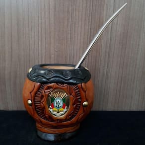 Desfrute seu chimarrão com qualidade, sabor e tradição! #Cuia Para Chimarrão #Cuia Uruguaia #Artesanal Garantia: 90 dias / Peso: 165g / Cor: Marrom, Dourado e Preto / Ref: 84009 Dimensões da Cuia: 10cm (C) x 5,5cm (L) x 9,5cm (A); - Abertura do bocal: Aproximadamente 5cm (C) x 2,5cm (A). Cuidados: A cuia já está curtida, ou seja, pronta para o uso, basta lavar com esponja macia e sabão neutro e fazer o chimarrão. A água a ser usada não deve ultrapassar os 75º, não utilizar água fervendo. Capacidade: Aproximadamente 200ml. *A cuia é produzida com materiais naturais, por isso podem ocorrer pequenas variações de traços, tonalidades e tamanho. *Não acompanha bomba. Material: - Resina; - Coquinho. Desfrute a tradição de beber um chimarrão com uma típica cuia gaúcha. Essa cuia para chimarrão estilo uruguaia possui desenhos trabalhados que tornam a peça especial e ainda mais bela. Seu corpo produzido em coquinho natural mantem o sabor tradicional do chimarrão e revela traços únicos que variam de peça para peça. Essa cuia é ideal para preparar o chimarrão e compartilhar em uma roda de mate, ou até mesmo beber sozinho. Você irá se impressionar não só pela qualidade deste item, mas também por sua beleza. Tenha produtos de qualidade para preparar e beber seu mate.
