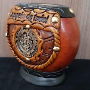 Essa cuia estilo uruguaia é ideal para quem é apaixonado por futebol, é torcedor do Internacional e adora beber chimarrão. A cuia gajeta é produzida de forma artesanal em porongo de formato coquinho com detalhes feitos manualmente e com escudo do Internacional. Essa cuia de chimarrão é um produto licenciado ideal para seu momento de matear ou para presentear um amigo querido que é louco pelo Inter. Desfrute a tradição de beber um chimarrão com uma típica cuia gaúcha de qualidade e beleza sem iguais.