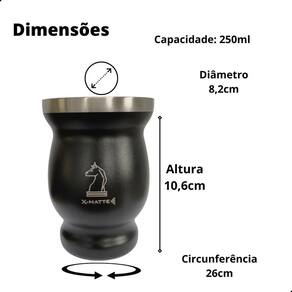 Apresentamos a Cuia Térmica de Aço Inoxidável 18/08, um produto moderno, antibacteriano e de fácil limpeza, que combina qualidade e preço justo. Com capacidade de 250 ml, essa cuia é perfeita para desfrutar de seu chimarrão até ouvir o característico ronco. Com muitas avaliações de 5 estrelas, nossos clientes estão extremamente satisfeitos com a qualidade e desempenho da Cuia Térmica. Além disso, ela possui um design elegante que combina funcionalidade com estilo. Livre de BPA e desenvolvida com parede dupla e isolamento a vácuo, essa cuia oferece um desempenho térmico excepcional. Mantenha suas bebidas quentes por até 45 minutos e geladas por até 3 horas, garantindo que seu mate esteja sempre na temperatura ideal, sem que a parede externa da cuia esquente. - Cuia Térmica de Aço Inoxidável 18/08 com capacidade de 250ml - Produto moderno, antibacteriano e de fácil limpeza - Excelente desempenho térmico de até 45 minutos para bebidas quentes e até 3 horas para geladas - Livre de BPA - Design elegante que alia funcionalidade e estilo Link da loja X-Matte: do vendedor: 12 meses Marca: Não Informado