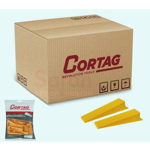 CUNHA NIVELAMENTO GRANEL 500 PCSCUNHA TRADICIONAL PARA NIVELAMENTO GRANEL 500 PCSCompativel Com LInha Tradicional, SmartReferência: 62420O sistema de nivelamento é indicado para pisos e revestimentos cerâmicos, especialmente porcelanatosAs cunhas para espaçador nivelador de piso e porcelanato da marca Cortag são a escolha ideal para quem busca praticidade e qualidade na hora de instalar pisos e revestimentos.Utilize espaçador Cortag Compativel. A cunha possui 23mm de altura e vêm em uma caixa com 500 peças ou pacotes com 24 Unidades.Compatíveis com espaçador Cortag Linha Tradicional, Smart.Feitas com materiais resistentes e duráveis, as cunhas permitem um nivelamento preciso entre as peças, garantindo um acabamento perfeito e uniforme. Além disso, seu design tradicional garante facilidade de uso e instalação, tornando o processo de colocação de pisos e porcelanatos muito mais rápido e eficientes.As cunhas são reutilizáveis, apenas certifique-se que as mesmas estão em perfeitas condições de uso, sem desgastes ou quebras.De acordo com o formato do revestimento, acrescente um ou mais espaçadores/niveladores em cada lado do mesmo se necessário.
