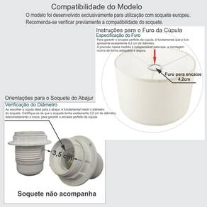É exclusivamente para fixação do soquete bocal furo 4,2cm. O produto composto apenas a cúpula, não acompanha abajur. Resistente á maresia, garantia 1 ano após recebimento. Sua utilização para bases e pedestal de abajur, abajur de quarto, abajur de sala, abajur de cabeceira, abajur moderno, luminárias e pendentes.
