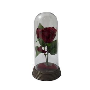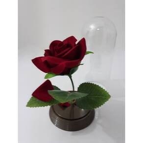Essa cúpula possui um design elegante, com uma base de plástico na cor ouro envelhecido e uma cúpula de acrílico translúcido. A rosa e as pétalas são artificiais, mas possuem um aspecto natural e aveludado.