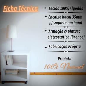 Cúpula de tecido, arame pintado de branco para soquete nacional. -------------------------------------------------------------------------------------------------------------------- Medidas Boca de cima: 40 cm Boca de baixo: 40 cm Altura: 28 cm Encaixe do soquete: 35mm