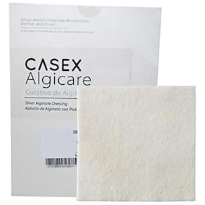 Curativo de Alginato de Cálcio e Sódio Casex - Tratamento Avançado para Feridas O Curativo de Alginato de Cálcio e Sódio Casex foi desenvolvido para o tratamento de feridas com moderado a alto nível de exsudato, promovendo um ambiente úmido que favorece a cicatrização rápida e eficaz. Com tecnologia avançada de troca iônica, o curativo transforma-se em gel ao entrar em contato com o exsudato, criando as condições ideais para a regeneração celular. Indicações de Uso O Curativo Algicare é indicado para o tratamento de: Úlceras Úlceras arteriais Úlceras diabéticas Úlceras venosas de estase Áreas doadoras Queimaduras de segundo grau Abrasões Descrição do Produto O Curativo Algicare é composto por fibras de ácido algínico contendo cálcio, sódio, ácido manurônico e gulurônico. Essas fibras absorvem o exsudato da ferida e formam um gel, promovendo um ambiente úmido que estimula a regeneração tecidual. A troca iônica entre o cálcio do alginato e o sódio do sangue e do exsudato resulta na formação de alginato de cálcio-sódio, que auxilia no processo de cicatrização. Preparo para a Aplicação Limpeza da ferida - Realize o debridamento da ferida removendo o tecido necrótico e as crostas em excesso. Irrigação - Lave a ferida cuidadosamente com solução fisiológica para remover impurezas. Ajuste - Recorte o curativo Algicare para que corresponda exatamente ao tamanho da ferida antes da aplicação. Aplicação do Produto Para feridas altamente exsudativas, aplique o curativo Algicare de forma seca diretamente sobre a lesão. Para feridas pouco exsudativas ou secas, umedeça o curativo com solução fisiológica antes de aplicar. Em ambas as situações, utilize um curativo secundário para garantir a fixação e proteção do curativo de alginato. Troca e Remoção do Produto Troque o curativo caso o exsudato atinja o curativo secundário. Em feridas altamente exsudativas, a formação de gel facilita a remoção sem causar dor ou desconforto. Em feridas com pouco exsudato, se o curativo estiver ressecado, hidrate-o com soro fisiológico para facilitar a remoção. O curativo pode permanecer na ferida por até 7 dias ou conforme orientação de um profissional de saúde. Precauções e Advertências Este produto deve ser prescrito e supervisionado por um profissional de saúde. Em caso de sinais de infecção, medidas médicas apropriadas devem ser tomadas. Se o gel formado pelo curativo ressecar, reidrate com soro fisiológico até que fique úmido e macio. Não utilize o produto caso a embalagem esteja violada ou que sofreu danos. Produto de uso único. Descartar após o uso. Detalhes do Produto Tamanho: 10 cm x 10 cm Marca: Casex Registro ANVISA: 10222320005 Promova uma cicatrização rápida e segura com o Curativo de Alginato de Cálcio e Sódio Casex. Tecnologia avançada para o cuidado eficaz de feridas