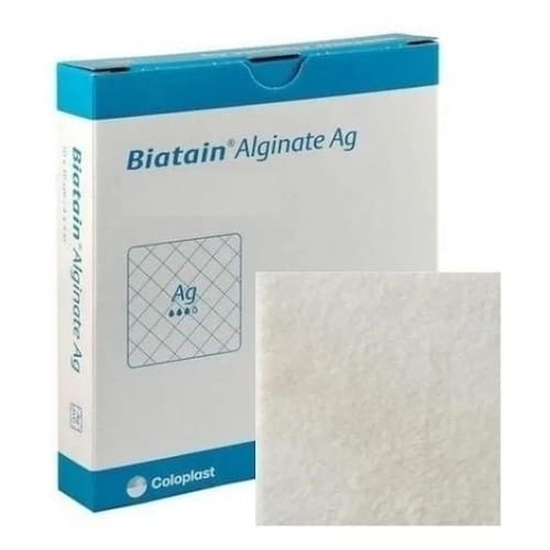 Biatain® Alginato Ag Curativo com Prata é um curativo de hidrofibra absorvente não tecido que gerencia o excesso de exsudato, proporcionando um ambiente úmido ideal para a cicatrização de feridas e na presença do exsudato libera os íons de prata. Ele gerencia o excesso de exsudato proporcionando um ambiente úmido ideal para a cicatrização de ferida e quando o exsudato da ferida é absorvido, o alginato forma um gel que auxilia no desbridamento autolítico. Este gel auxilia para que no momento da remoção, não ocorra danos.