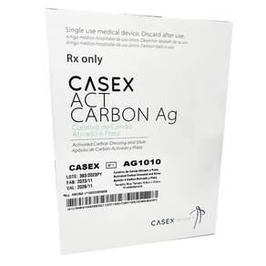 Curativo de carvão ativado e prata - Casex Act Carbon Ag Contém 10 unidades Esterelizado poe óxido de etileno O carvão ativado Act Carbon Ag é constituido por uma manta de tecido de carvão ativado de 120g/m2 impregnado a 0,15% De nitrato de prata envolto externamente por um tecido não tecido de rayon de 30g/m2, com baixa aderência. Controla a infecção e o odor. Principios de ação A camada de não tecido propicia o fluxo de exsudato para o tecido de carvão ativado que retém as bacterias, as quais são inativadas Pela ação bactericida da prata. Indicações - Feridas exsudativas, infectadas, crônicas ou agudas, superficiais ou profundas e com odor desagradável. Informações úteis - Não pode ser cortado - Pode ser colocado em qualquer uma das faces em contato com a ferida - Utilize um curativo secundário para manter o curativo Act carbon Ag no lugar - O curativo Act Carbon Ag pode ser mantido por 3 a 7 dias Observações O curativo Act Carbon Ag faz a absorção das substâncias químicas liberadas pelas feridas, a prata oferece uma ação bactericida. A cicatrização torna-se acelerada pela função bactericida, exercida pela prata, complementando a ação do carvão como Do tecido de granulação. Informações Gerais - tamanho: 10,5 x 10,5cm - Quantidade: 10unidades Marca: casex ANVISA: 10222320009 Marca: Não Informado