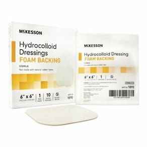 Descrição do produto Curativos hidrocolóides McKesson Suporte de espuma 6" x 6" (15,2 cm x 15,2 cm) Os curativos de hidrocolóide McKesson são curativos flexíveis, absorventes e impermeáveis que podem fornecer uma barreira eficaz aos microrganismos. Eles ajudam a manter um ambiente úmido de cicatrização de feridas sem hidratar demais o leito da ferida. Geralmente são recomendados como curativos apropriados para uma ampla variedade de feridas., incluindo úlceras de pressão, ferimentos leves, úlceras nas pernas e queimaduras. O curativo permanece no local por até 7 dias. A camada hidrocolóide reage com o material cer da ferida para formar uma cobertura gelatinosa que ajuda a manter um ambiente úmido. O sistema de remoção do curativo coeso não se decompõe nem deixa resíduos na ferida e facilita a remoção sem rasgar o curativo ou a pele. A camada de contato com a ferida permanece intacta e minimiza possíveis distúrbios no leito da ferida. Cantos arredondados de baixo perfil e design cônico liso ajudam a reduzir o enrolamento das bordas e o risco de cisalhamento e atrito. A camada externa semitransparente permite a visualização do local da ferida sem remover o curativo. A camada interna altamente absorvente remove com eficácia os exsudatos da ferida e facilita a granulação, epitelização e autólise. O filme de barreira externa resistente à umidade ajuda a prevenir urina, fezes e/ou umidade ao penetrar no curativo, reduzindo o risco de contaminação da ferida; . O tempo de uso de até 7 dias proporciona um ambiente úmido imperturbável para feridas, melhora a cicatrização, minimiza a maceração da pele e reduz a frequência de trocas de curativos. Disponível em vários formatos e tamanhos para atender às necessidades do cuidador, incluindo áreas difíceis de vestir, como sacro, calcanhar e cotovelo. Disponível com suporte de filme ou espuma para atender às várias necessidades de aplicação. Estéril para uso único Não feito com látex de borracha l. Embalado: 1 por pacote, 10 pacotes por caixa, 10 caixas por caixa Benefícios do produto Sugestões de ingredientes Nota especial Avisos Isenções de responsabilidade: 1. Oferecemos produtos de marca nacional que são produzidos de acordo com os padrões de fabricação estabelecidos pelos reguladores a preços baixos todos os dias. Não use produtos não comprovados e sem marca, que podem representar sérios riscos à sua saúde.