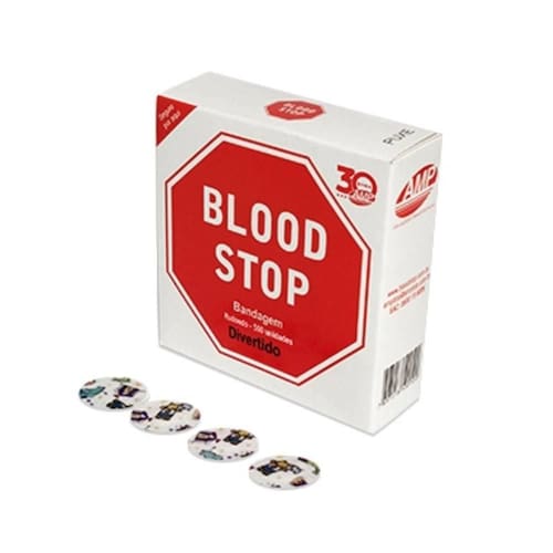Bandagem Para Estancamento de Sangue Blood Stop Redondo Infantil - Caixa com 500 Unidades Instruções de Uso: - Retire o lacre da embalagem, segure no local indicado, puxe a fita, destaque a bandagem e aplique no local. Armazenamento: - Armazenar e conservar em local seco e fresco ao abrigo da luz direta e umidade. Composição: - Não tecido de viscose e poliéster com adesivo termoplástico e papel siliconado. Modelo: - Redondo Divertido Utilizado em crianças . Descrição: Redondo. Não tecido de viscose e poliéster. Adesivo termoplástico. Papel siliconado. Uso único. Descartar após o uso. Especificação técnica: Mantendo a praticidade e agilidade na finalização dos exames laboratoriais, Blood Stop 500, apresenta uma embalagem econômica de papelão com 500 unidades de curativos. Foi desenvolvido para hospitais e laboratórios que apresentam um alto giro de exames e coletas de sangue. Embalagem: Rolo com 500 unid. Ean: 7897018520193