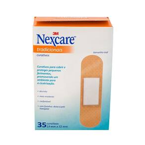 CURATIVO NEXCARE TRADICIONAL Curativos para cobrir e proteger pequenos ferimentos, promovendo um ambiente para a cicatrização. Discreto Mais resistente Confortável Com furinhos; deixa a pele transpira Marca: Não Informado