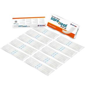 Curativo visível safe heal post-op 10x30 5x25 50un kelogel Tamanho: 10x30cm O curativo visível safe heal post-op kelogel é um curativo estéril com design inovador que permite monitorar feridas sem trocas desnecessárias. É translúcido, maleável, impermeável e possui uma almofada de espuma em formato de colmeia para visibilidade. Sua aplicação é facilitada por tiras destacáveis e um filme de poliuretano.
