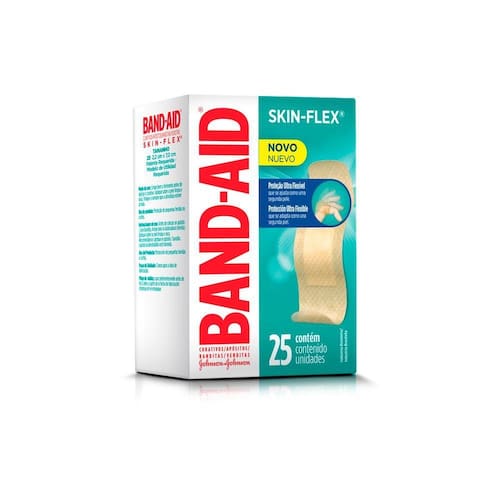 Curativos Band-Aid Flex 25 unidades O Band-Aid Skin-Flex foi projetado para se mover como uma segunda pele, proporcionando flexibilidade, conforto, secagem rápida e retenção por até 24 horas. É indicado para proteger pequenas feridas ou cortes. O machucado coberto com o Band-Aid Skin-Flex cura mais rapidamente e ajuda a proteger contra sujeira e germes que podem causar infecção. Não sai do lugar, mesmo molhado/ Adesão por até 24 horas, fic mais tempo no lugar/ Expande e contrai seguindo os movimentos do corpo/ Proteção Ultra Flexível que se ajusta como uma segunda pele/ Almofada projetada par aamortecer feridas/ Almofada não gruda no ferimento/ Livre de latex/ Touch-screen friendly / Dura mesmo após lavagem das mãos, permanece no lugar e intacto após até 6 lavagens/ 5x mais flexível quando comparado a uma curativo normal (Comparado com Band-Aid Transparente) *Compre Produtos Band-Aid.