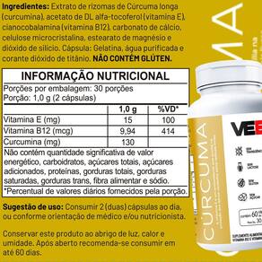Potencialize sua saúde com a força da natureza! O Suplemento de Cúrcuma com Vitaminas B12 e E da VEE oferece uma combinação poderosa de ingredientes antioxidantes e anti-inflamatórios naturais para proteger seu corpo dos danos causados pelos radicais livres, fortalecer o sistema imunológico e promover bem-estar diário. Benefícios que você sente no dia a dia: • Combate inflamações naturais no corpo • Fortalece a imunidade • Ação antioxidante e antienvelhecimento • Mais energia com a vitamina B12 • Proteção celular com a vitamina E • Suporte às articulações e ao sistema digestivo
