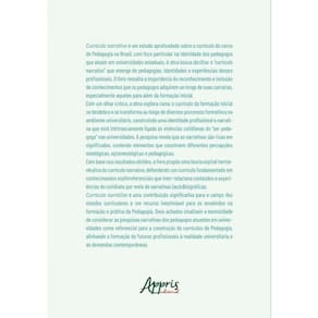 Currículo narrativo é um estudo aprofundado sobre o currículo do curso de Pedagogia no Brasil, com foco particular na identidade dos pedagogos que atuam em universidades estaduais. A obra busca decifrar o “currículo narrativo” que emerge de pedagogias, identidades e experiências desses profissionais. O livro ressalta a importância do reconhecimento e inclusão de conhecimentos que os pedagogos adquirem ao longo de suas carreiras, especialmente aqueles para além da formação inicial. Com um olhar crítico, a obra explora como o currículo da formação inicial se desdobra e se transforma ao longo de diversos processos formativos no ambiente universitário, construindo uma identidade profissional e narrativa que está intrinsecamente ligada às vivências cotidianas do “ser pedagoga” nas universidades. A pesquisa revela que as narrativas são ricas em significados, contendo elementos que constroem diferentes percepções ontológicas, epistemológicas e pedagógicas. Com base nos resultados obtidos, o livro propõe uma teoria espiral hermenêutica do currículo narrativo, defendendo um currículo fundamentado em conhecimentos multirreferenciais que inter-relaciona conteúdos e experiências do cotidiano por meio de narrativas (auto)biográficas. Currículo narrativo é uma contribuição significativa para o campo dos estudos curriculares e um recurso inestimável para os envolvidos na formação e prática da Pedagogia. Seus achados sinalizam a necessidade de considerar as pesquisas narrativas dos pedagogos atuantes em universidades como referencial para a construção de currículos de Pedagogia, alinhando a formação de futuros profissionais à realidade universitária e às demandas contemporâneas.