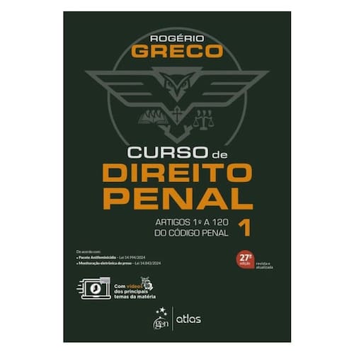 Fruto de um intenso trabalho de pesquisa teórica, conjugado com a experiência prática do autor, o Curso de Direito Penal, volume 1, tem a finalidade de trazer ao leitor, de forma didática, clara e aprofundada, discussões sobre todos os artigos que envolvem a Parte Geral do Código Penal. O autor, que durante aproximadamente 30 anos atuou no Ministério Público de Minas Gerais, praticamente sempre lidando com a área penal, conseguiu reunir neste volume as discussões doutrinárias mais importantes e atuais, sem descuidar das mais modernas posições de nossos Tribunais, principalmente os Superiores. O livro encontra-se atualizado com todas as modificações legislativas ocorridas no ano de 2024, permitindo um estudo seguro e completo de toda a Parte Geral do Código Penal. A obra, frequentemente citada pelos nossos Tribunais Superiores e indicada por várias bancas de concursos públicos, serve de norte não somente para aqueles que se encontram concluindo o curso de Direito, mas também para aqueles que almejam prestar concursos na área jurídica, bem como os profissionais que militam na área das Ciências Penais. Com certeza, trata-se de um dos mais completos estudos já realizados sobre a Parte Geral do Código Penal, consagrado, agora, em sua 27ª edição. ?