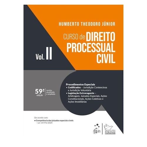 Revista, atualizada e ampliada, esta clássica obra do célebre jurista Humberto Theodoro Júnior chega a sua 59ª edição. Este segundo volume contempla os procedimentos especiais do processo civil brasileiro, abrangendo não apenas aqueles codificados no Código de Processo Civil de 2015 (jurisdição contenciosa e jurisdição voluntária), mas trazendo também procedimentos regulados pela legislação extravagante, como a Arbitragem, os Juizados Especiais, as Ações Constitucionais, as Ações Coletivas e as Ações Imobiliárias. Em suma, trata-se de um trabalho essencial para agentes dos mais diversos segmentos do campo jurídico, alunos de Direito e demais estudiosos do tema em questão. ?
