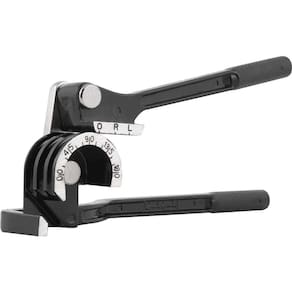 Curvador 3 em 1, permite realizar curvas de 3 medidas de tubos de cobre diferentes com o mesmo equipamento e contém escalas para indicar o grau desejado a ser dobrado.