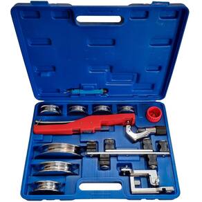 Curvador Dobrador Reversível de Tubos 90 Graus Matriz em Alumínio de 1/4 A 7/8 com Cortador e Escariador Kit completo indicado para dobrar tubos de cobre de diferentes diâmetros sem danificá-los. Muito utilizado em sistemas de refrigeração e ar-condicionado. Para curvar tubos nos seguintes diâmetros: 1/4, 5/16, 3/8, 1/2, 5/8, 3/4 e 7/8 de polegada - Marca: Charbs - Referência: CH0394 - Kit com matrizes de liga de alumínio - Multifuncionalidade através da função especial de dobra na direção reversa atende às necessidades de quem busca qualidade e versatilidade, otimizando o tempo de trabalho e garantindo resultados de alta precisão; kit indispensável para instalação e manutenção de tubos de aparelhos de refrigeração - O Curvador de Tubos serve para curvar tubos de cobre e alumínio sem causar danos à estrutura do componente - O cortador serve para cortar os tubos de forma precisa. - Bitolas aplicáveis: 8 A 22mm - Faixa De Flexão: F6-F22 - Matrizes para as bitolas: 1/4, 5/16, 3/8, 1/2, 5/8, 3/4 e 7/8 Pol. - Compatível também com tubos métricos: 6mm, 8mm, 10mm, 12mm, 16mm, 19mm e 22mm - Espessura máxima da parede do Tubo a ser curvado: 1mm - Dimensões da embalagem: 46 x 32 x 9cm - Peso bruto: 5,2Kg - : 90 dias Itens inclusos: - 1 Dobrador de Tubos - 7 Matrizes em Alumínio de 1/4' a 7/8 Pol. - 1 Cortador de Tubo de Cobre de 1/8 a 1-1/8 Pol. - 1 Rebarbador - 1 Escareador - 1 Maleta de proteção Marca: Não Informado