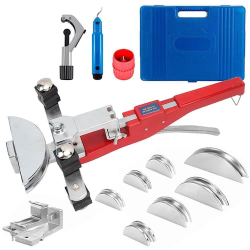 Curvador Dobrador Reversível de Tubos 90 Graus Matriz em Alumínio de 1/4 A 7/8 com Cortador e Escariador Kit completo indicado para dobrar tubos de cobre de diferentes diâmetros sem danificá-los. Muito utilizado em sistemas de refrigeração e ar-condicionado. Para curvar tubos nos seguintes diâmetros: 1/4, 5/16, 3/8, 1/2, 5/8, 3/4 e 7/8 de polegada - Marca: Charbs - Referência: CH0394 - Kit com matrizes de liga de alumínio - Multifuncionalidade através da função especial de dobra na direção reversa atende às necessidades de quem busca qualidade e versatilidade, otimizando o tempo de trabalho e garantindo resultados de alta precisão; kit indispensável para instalação e manutenção de tubos de aparelhos de refrigeração - O Curvador de Tubos serve para curvar tubos de cobre e alumínio sem causar danos à estrutura do componente - O cortador serve para cortar os tubos de forma precisa. - Bitolas aplicáveis: 8 A 22mm - Faixa De Flexão: F6-F22 - Matrizes para as bitolas: 1/4, 5/16, 3/8, 1/2, 5/8, 3/4 e 7/8 Pol. - Compatível também com tubos métricos: 6mm, 8mm, 10mm, 12mm, 16mm, 19mm e 22mm - Espessura máxima da parede do Tubo a ser curvado: 1mm - Dimensões da embalagem: 46 x 32 x 9cm - Peso bruto: 5,2Kg - : 90 dias Itens inclusos: - 1 Dobrador de Tubos - 7 Matrizes em Alumínio de 1/4' a 7/8 Pol. - 1 Cortador de Tubo de Cobre de 1/8 a 1-1/8 Pol. - 1 Rebarbador - 1 Escareador - 1 Maleta de proteção Marca: Não Informado Ean: 7906814663970