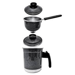 - Acabamento pintado - Fácil de limpar - Total 3 peças: caneco, cuscuzeira e tampa