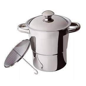 Em aço inox. Pode ir ao lava louças. Tamanho 16 16 cm diâmetro superior . Capacidade 2,5 litros. Peso 415 g. Altura total com tampa 20 cm. Ean: 7899110594744