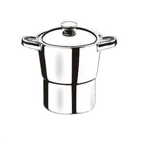 Cuscuzeira Brinox Lyon em aço inox. Pode ir ao lava louças. Diâmetro 16 cm, altura 19 cm. Peso 415 g. Acompanha manual de uso e receita em português. Certificação de Segurança INMETRO Registro 001460/2018 Ean: 7896502816026