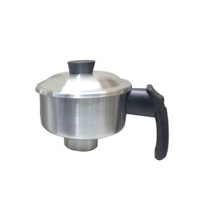 Composto por um caneco em alumínio reforçado para ferver água e duas peças de alumínio para fazer o cuscuz com respectivo cabos de baquelite A Cuscuzeira Individual, conta com o seu material em aluminio facilitando o preparo e seu cabo em Baquelite, que dessa forma facilita tambem o seu manuseio
