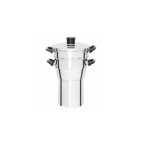 Composto por um caneco de alumínio reforçado para ferver água, com alça de baquelite e com tampa, bem como peneira independente externa com alça de baquelite e tampa.