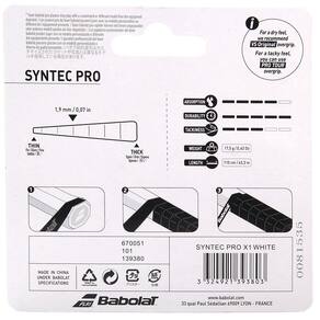Cushion Grip Babolat Syntec Pro oferece uma redução de 10% de espessura, com isso transmite melhor as sensações durante seu jogo.