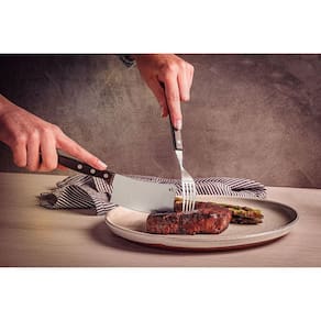 Lâmina de aço inox com maior durabilidade do fio devido ao tratamento térmico. Cabo de madeira tratada Polywood resistente à impactos e alta temperaturas, garantindo maior resistência e durabilidade. Rebites de aço inox. Pode ir à máquina de lavar louças facilitando seu dia a dia.