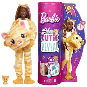 Com 10 surpresas em 1 pacote, as bonecas Barbie Cutie Reveal proporcionam a mais fofa experiência de unboxing com amigos e animais macios e fofos e modas, surpresas e diversão transformadora