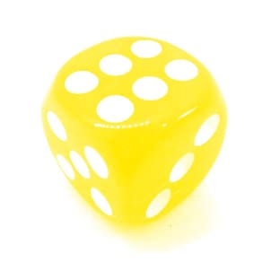 Dado 6 Faces Translúcido Amarelo 14mm, normalmente utilizado na Umbanda e no Candomblé pela falange da Malandragem, Zé Pilintra e Maria Navalha. Salve a Malandragem!