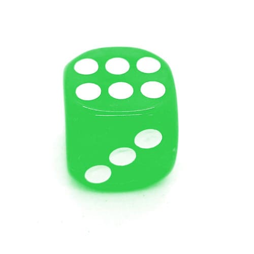 Dado 6 Faces Translúcido Verde 14mm, normalmente utilizado na Umbanda e no Candomblé pela falange da Malandragem, Zé Pilintra e Maria Navalha. Salve a Malandragem!