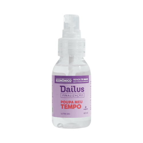 Dailus - Finalização Ultra Sec - Poupe Meu Tempo 60mlNão há nada mais frustrante do que pintar as unhas e borrá-las logo em seguida, não é mesmo? Seus problemas acabaram, migx: o nosso ULTRA SEC é aquele produto capaz de blindar o esmalte para que essa tragédia de beleza não aconteça – além de te deixar com as mãos livres para pegar uma chave dentro da bolsa ou trocar de roupa tranquilamente, claro. Esse item é indispensável, agora está com embalagem nova e tom roxinho na embalagem, que destaca a sua função de finalização das unhas. Por que amar? - Fácil de aplicar - Secagem ultrarrápida - Longa duração - Pincel big flat brush - Tampa anatômica - Nova embalagem - Fácil de identificarTipo:Base e Tratamento.Sugestão de Uso:Por conta da sua secagem em segundos, uma pincelada desse produto é o suficiente para proteger as unhas dos borrões e arranhões, logo após a esmaltação.Contém:01 - Dailus - Finalização Ultra Sec - Poupe Meu Tempo 60ml.