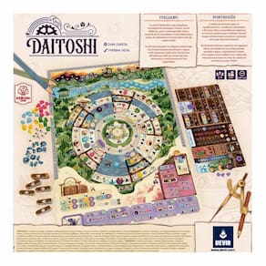 Daitoshi nos transporta para uma era de progresso movida a vapor, onde cidades crescem, fábricas prosperam e uma megamáquina promete revolucionar o futuro. Nele você competirá para somar pontos de vitória gerindo recursos, expandindo distritos e negociando, mas sempre enfrentando o impacto ambiental de suas ações. Enquanto expande sua fábrica e contribui para o avanço da cidade, terá que lidar com as consequências no subsolo, florestas e rios. Apesar das antigas lendas sobre Yôkai protegendo a natureza, o progresso segue implacável, embora reflorestar e mascarar seus impactos possa ser uma estratégia prudente.