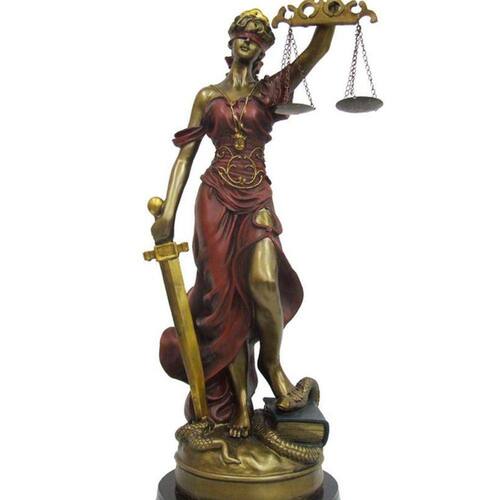 A Dama da Justiça é uma divindade grega por meio da qual a justiça é definida, no sentido moral, como o sentimento da verdade, da equidade e da humanidade, colocado acima das paixões humanas. Por este motivo, sendo personificada pela deusa Têmis, é representada de olhos vendados e com uma balança na mão.A Peça é feita de resina na cor vermelha e cobre ideal para decorar sua casa ou escritório ou presentear um amigo ou familiar que luta pela lei. Ficha técnica Comprimento: 9 cm Largura: 9 cm Altura: 28 cm Cor: Vermelho/Cobre Material: Resina com base de madeira