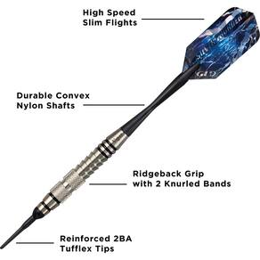 - Possui pontas de dardos 2BA Tufflex Tips II que têm um cone reforçado, tornando-os extremamente fortes e duráveis