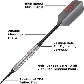 Viper V-Factor Dardos 90% de tungstênio com ponta macia com armazenamento/estojo de viagem, anelado, 18 gramas
