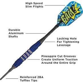 - Possui pontos de dardo 2BA Tufflex Tips II com ponta macia que têm um cone reforçado, tornando-os extremamente fortes e duráveis