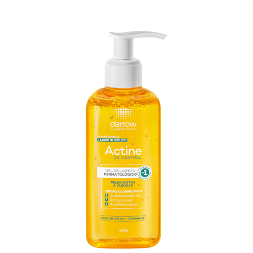 Gel de limpeza. Darrow Actine Oil Control é indicado para peles mistas e oleosas, promove a desobstrução dos poros, ação antioleosidade e pele matificada por mais tempo.