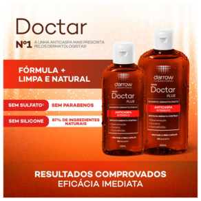 O Shampoo Darrow Doctar Plus é o shampoo anticaspa nº 1 da linha mais prescrita por médicos dermatologistas. Combina ingredientes que garantem resultados imediatos e ação antifúngica: combate a formação de placas, alivia a irritação, reduz a oleosidade e diminui a coceira. A fórmula do Doctar Plus Shampoo sem sulfato protege a fibra capilar e não prejudica os fios.