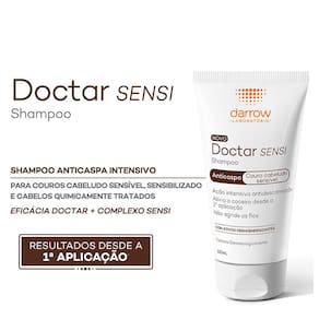 O Shampoo Anticaspa Doctar Sensi, da Darrow, é um produto de tratamento dermatológico. Seus ingredientes combatem a caspa e a formação de novas placas, aliviam a coceira do couro cabeludo e limpam o fio de modo não agressivo.