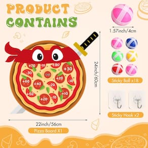 Características: Comece a festa com nosso tabuleiro de dardos seguro e envolvente com bolas adesivas que se adequam a várias ocasiões. É uma maneira divertida de ensinar os pequenos sobre precisão, melhorar as habilidades de coordenação e promover a interação. Diga adeus à frustração, pois as bolas adesivas são projetadas para sempre grudar no alvo, garantindo que a diversão nunca pare com nosso dardo com bolas pegajosas. Experimente uma sessão de jogo suave e alegre com seus entes queridos, seja em ambientes internos ou externos, perpetuando risos e memórias inesquecíveis. Especificações: Material: Tábua: feltro Bola: plástico Cor: cor brilhante Quadro: cerca de 24,13 x 21,93 polegadas/61,3 x 55,7 cm Bola: cerca de 4 cm A embalagem inclui: 1 placa de dardos para pizza. 18 bolas adesivas Observações: Medição manual, permita pequenos erros no tamanho. A cor pode existir uma pequena diferença devido a diferentes telas. - Armazenamento e portabilidade convenientes: o pacote inclui 18 bolas adesivas e 1 tabuleiro de dardos (com ganchos); Para os pequenos, é uma boa maneira de melhorar a coordenação olho-mão, e brincar com amigos pode melhorar a amizade e cultivar a capacidade de coordenação e cooperação; Estrategicamente projetado com um recurso dobrável, este conjunto de dardos com bolas adesivas garante armazenamento conveniente e fácil portabilidade; carregue sua diversão em reuniões ou festas and become the life of the celebration - Tamanho grande: o tabuleiro de dardos de tamanho com bolas adesivas mede cerca de 24,13 x 21,93 polegadas/61,3 x 55,7 cm, e as bolas adesivas têm cerca de 4 cm; seja você pequeno, adolescente ou adulto, o alvo grande permite fácil visibilidade e diversão enquanto mira para alvos de salsicha e tomate - Jogo com tema de pizza: mergulhe em um jogo agradável que usa uma cor vibrante com nosso tabuleiro de dardos com bolas pegajosas, alvo de pizza. Lance suas 18 bolas adesivas e observe-as aderindo com precisão satisfatória; mergulhe em uma jogabilidade cativante que não é apenas mais segura do que lançar dardos, mas também aumenta suas habilidades de mira e coordenação - Qualidade e design confiável: cada conjunto defende uma mistura de qualidade e durabilidade; projetado usando dardo de feltro de qualidade com bolas adesivas, os componentes prometem um jogo duradouro e suportam o uso repetido facilmente; a costura confiável reforça sua longevidade, garantindo que seu conjunto de dardos esteja pronto para inúmeros jogos; o dardo gruda gruda sempre, eliminando a frustração, e o tabuleiro de dardos pode ser facilmente montado usando as ventosas incluídas - Sociável e versátil: o conjunto de dardos de pizza com bolas pegajosas é adequado para uma série de eventos, de festas em casa a reuniões de família ou apenas um dia divertido no parque; Adequado para festas de aniversário de meninos e meninas, chás de bebê, decorações de festa com tema oceânico, decorações de festa de aniversário de animais marinhos, incentiva a sociabilidade e promove uma competição