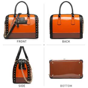 MATERIAL Fabricado em couro sintético DIMENSÃO Aprox.31 x 22 x , bolsas e bolsas femininas de tamanho adequado. BOLSOS 2 bolsos superiores abertos na parede frontal interna, 1 bolso interno traseiro com zíper na parede CARACTERÍSTICAS Fechamento superior com zíper, tachas de proteção na parte inferior plana e tachas decorativas na borda de três painéis, hardware tom dourado e design de emenda em dois tons. Perfeito para namorar, fazer compras, trabalhar, viajar, vocação etc. Manutenção A manutenção regular pode mantê lo em perfeitas condições. Se derramar algo sobre ele, basta limpar com um pano úmido e deixar a bolsa secar em local ventilado. Ótimo para uso diário e sempre ficará bonito Marca: Não Informado