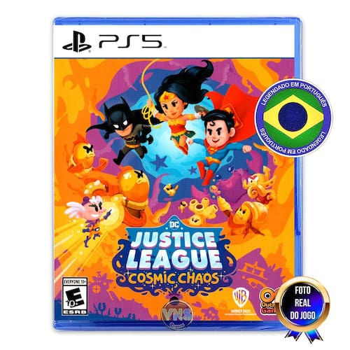 DC's Justice League: Cosmic Chaos para PS5 oferece uma aventura explosiva onde os fãs da DC poderão unir forças com seus super-heróis favoritos. Este título coloca os jogadores no centro de uma batalha épica para salvar o planeta de uma ameaça intergaláctica, mergulhando-os em ação e estratégia como nunca antes.No coração de DC's Justice League: Cosmic Chaos, está a capacidade dos jogadores de assumirem o papel de ícones como Superman, Batman e Wonder Woman. Cada herói oferece habilidades únicas, permitindo uma variedade de estilos de jogo e estratégias para enfrentar os vilões. A integração de um mundo aberto, cheio de missões secundárias e desafios, enriquece ainda mais a experiência, prometendo horas de entretenimento.A narrativa envolvente conduz os jogadores através de uma série de eventos dinâmicos, com a liga da justiça enfrentando adversários formidáveis em uma luta para garantir a segurança da Terra. Além disso, o jogo se destaca pela sua apresentação visual impressionante, que captura a essência vibrante do universo DC com gráficos detalhados e cenários imersivos.Características:- Heróis Icônicos: Jogue como Superman, Batman, Wonder Woman e mais, cada um com suas habilidades únicas.- Mundo Aberto Vibrante: Explore um mundo rico em desafios e missões secundárias, imerso no universo DC.- Narrativa Cativante: Envolva-se em uma história emocionante onde a Liga da Justiça enfrenta uma ameaça intergaláctica.- Apresentação Visual Deslumbrante: Desfrute de gráficos detalhados e cenários que trazem o mundo da DC à vida.- Ação Estratégica: Domine as habilidades dos heróis para superar os vilões em batalhas épicas.Não perca a chance de se juntar à DC's Justice League: Cosmic Chaos em uma aventura sem precedentes para PS5. Garanta o seu exemplar hoje mesmo na nossa loja e prepare-se para salvar o mundo com os maiores heróis da DC!Idiomas:Áudio: InglêsLegendas: Português, inglêsPlataforma: PS5 Distribuidor: Outright Games LLC Desenvolvedor: PHL Collective Gênero: Ação, Aventura, Família Jogadores: Offline: 1 a 2Espaço Mínimo: 14 GBClassificação Indicativa: A partir de 10 anos / E10+