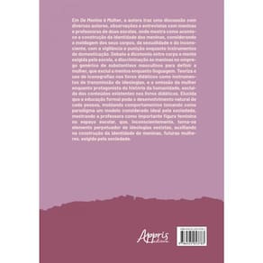 Em De Menina à Mulher, a autora traz uma discussão com diversos autores, observações e entrevistas com meninas e professoras de duas escolas, onde mostra como acontece a construção da identidade das meninas, considerando a moldagem dos seus corpos, da sexualidade e do inconsciente, com a vigilância e punição enquanto instrumentos de domesticação. Debate a dicotomia entre corpo e mente exigida pela escola, a discriminação às meninas no emprego genérico de substantivos masculinos para definir a mulher, que exclui a menina enquanto linguagem. Teoriza o uso de iconografias nos livros didáticos como instrumentos de transmissão de ideologias, e a omissão da mulher enquanto protagonista da história da humanidade, excluída dos conteúdos existentes nos livros didáticos. Elucida que a educação formal poda o desenvolvimento natural de cada pessoa, moldando comportamentos tomando como paradigma um modelo considerado ideal pela sociedade, mostrando a professora como importante figura feminina no espaço escolar, que, inconscientemente, torna-se elemento perpetuador de ideologias sexistas, auxiliando na construção da identidade de meninas, futuras mulheres, exigida pela sociedade.