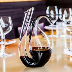 A Riedel, sabendo que cada vinho encontra seu equilíbrio e evidencia melhor suas características em uma taça específica, desenvolveu taças de diferentes formatos e tamanhos, sendo reconhecidas pelos sommeliers ao redor do mundo. Além de belíssimos e icônicos decanters com design exclusivo.