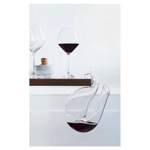 Formado livremente à mão, o decanter apresenta boca larga tanto para receber quanto para servir o vinho, abrindo-se em uma base mais larga para permitir o livre fluxo de troca de ar com o vinho. Uma ponta cônica e enrolada adiciona um segundo nível de funcionalidade ao Ayam, atuando como uma alça elegante.