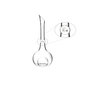 A peça foi desenhada com reentrância alta na base, garantindo fácil manuseio na hora de servir o vinho. Este decantador foi feito à mão, o que significa que cada peça é ligeiramente única. Este produto é feito de vidro cristal transparente.