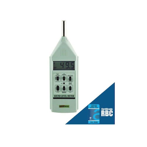 DECIBELÍMETRO MOD. DEC-416, FAIXA DE MEDIÇÃO DE 30 A 130DB, PONDERAÇÃO A E C, PONDERAÇÃO DE TEMPO FAST E SLOW COM CERTIFICADO DE CALIBRAÇÃO RASTREÁVEL RBC DESCRIÇÃO: Decibelímetro mod. dec-416, faixa de medição de 30 a 130db, ponderação a e c, ponderação de tempo fast e slow com certificado de calibração rastreável rbc APLICAÇÕES: Este instrumento, de uso geral, foi projetado com base nas exigências dos clientes que necessitam realizar medições de nível sonoro de maneira simples e prática. De custo acessível, compacto e fácil de transportar é o instrumento ideal para medições de referência acústica tais como comparativo de nível sonoro automotivo, diferenças de níveis entre exterior e interior para estudo de isolação acústica de estúdios, auditórios e também referência para isolação acústica de igrejas, boates, instalações de som profissionais . Amplamente utilizado em cursos técnicos, escolas e universidades para demonstrar a teoria de medição e estudos baseados no ruído. DESCRIÇÃO CERTIFICADO DE CALIBRAÇÃO: Certificado de Calibração para Decibelímetro 2 pontos: 94 e 114 dB Calibração rastreável RBC Procedência: Laboratório de Calibração Instrutherm ESPECIFICAÇÕES TÉCNICAS: Display de cristal líquido (LCD) de 4 dígitos Escala: 30 a 130 dB em 3 faixas Precisão: ± 1 dB Resolução: 0,1 dB Microfone de eletreto condensado destacável Ponderação: A e C Resposta: Rápida e lenta Memória de valor máximo (pico) Data Hold: Congela a leitura no display Freqüência: 31,5 Hz a 8 Khz Indicação de sobre-escala ou fundo de escala Saída AC: 0,4 Vrms Filtro de compensação para curva A e C na saída Analógica com calibrador interno (externo opcional) Indicação de bateria fraca Temperatura de operação: 0°C a 50°C Umidade de operação: Máx. 80% RH Alimentação: 2 Baterias de 9V Dimensões / Peso: 260 × 87 × 36mm / 450g ACESSÓRIOS FORNECIDOS: Decibelímetro digital DEC-416 Chave de fenda Estojo Manual de instruções Certificado de calibração rastreável rbc