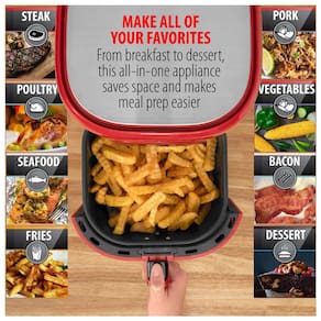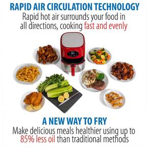 CIRCULAÇÃO DE AR SUPERAQUECIDO Combine uma culinária saudável e resultados rápidos com a Fritadeira de Ar Digital Deco Chef 3.5 L Usando ar superaquecido de circulação rápida, cozinhe sua comida rápida e uniformemente, com pouco ou nenhum óleo. Do café da manhã à sobremesa, crie pratos com menos calorias em comparação com a fritura clássica, sem sacrificar o sabor CONTROLES INTELIGENTES Com um painel de controle de toque LED fácil de usar, controle a temperatura, o tempo de cozimento e escolha entre 6 modos de cozimento predefinidos diferentes que incluem Peixe, Bife, Frango, Hambúrgueres, Batatas Fritas Caseiras e Batatas Fritas Congeladas. COZIMENTO PREDEFINIDO E MANUAL Além dos modos de cozimento predefinidos, use as configurações manuais para ajustar as temperaturas de cozimento entre 79 e 204 C, bem como tempos de cozimento entre 0 60 minutos. Assim que o cozimento estiver concluído, cada fritadeira soará para que você saiba que sua comida está pronta CESTO PARA MÁQUINAS DE LAVAR LOUÇA O cesto de cozinha removível possui um revestimento antiaderente que é fácil de limpar e manter. Ao contrário da maioria das fritadeiras de ar, esta cesta pode ser removida da alça e pode ser lavada na máquina de lavar louça, tornando a limpeza uma ideia posterior. PERFEITA PARA PEQUENOS ESPAÇOS De tamanho compacto, esta fritadeira de ar é perfeita para cozinhas menores com espaço limitado no balcão encontrado em apartamentos ou dormitórios. Mesmo se você tiver uma cozinha enorme, esta fritadeira de ar faz refeições em porções perfeitas e se encaixa bem em qualquer decoração. Descubra como a fritura ao ar livre pode tornar uma refeição mais saudável e você Certificado ETL